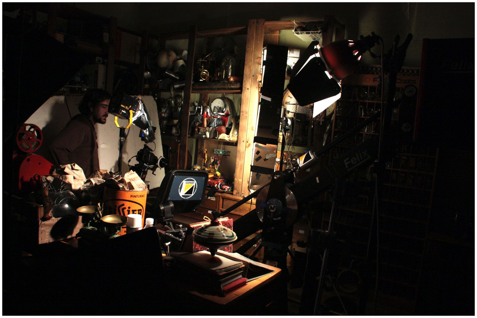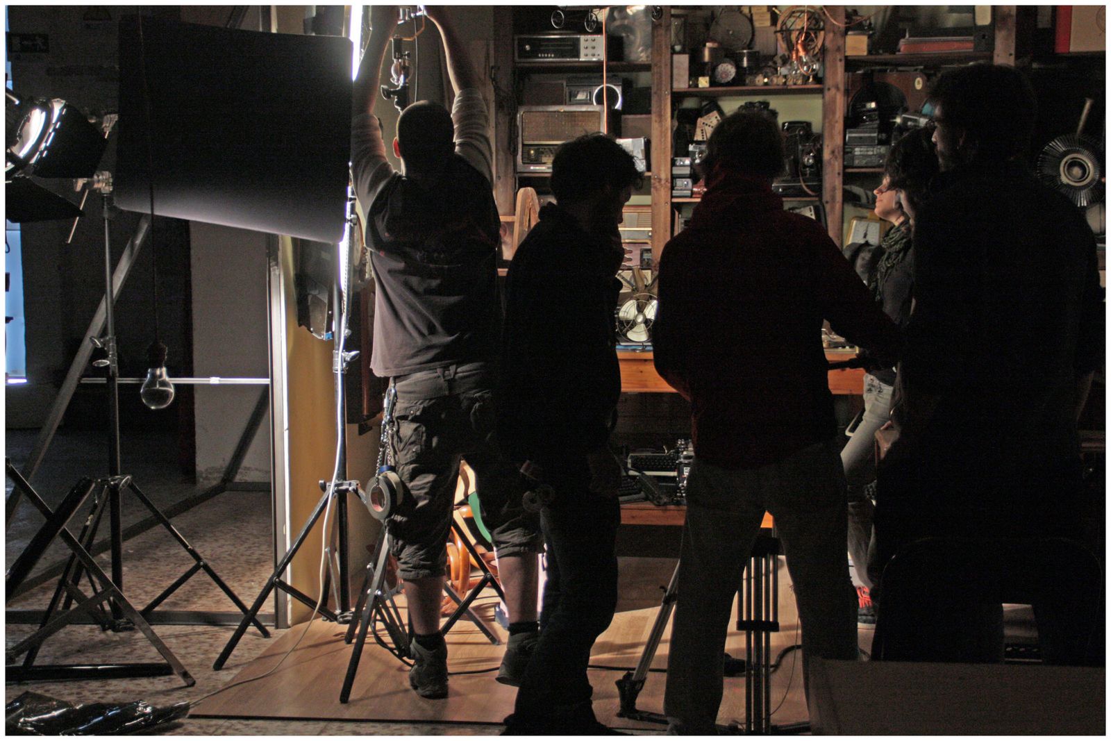 | Equipo de foto iluminando el set |